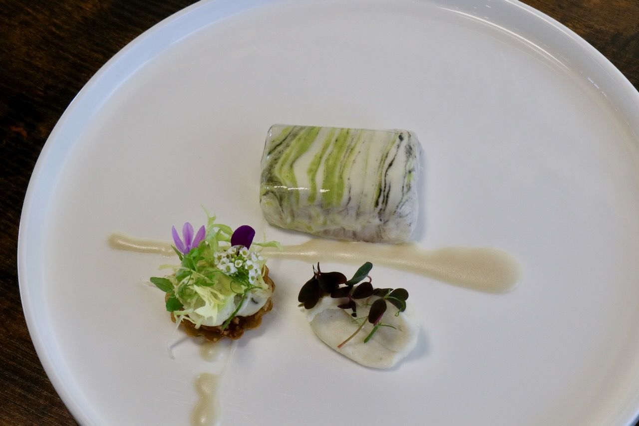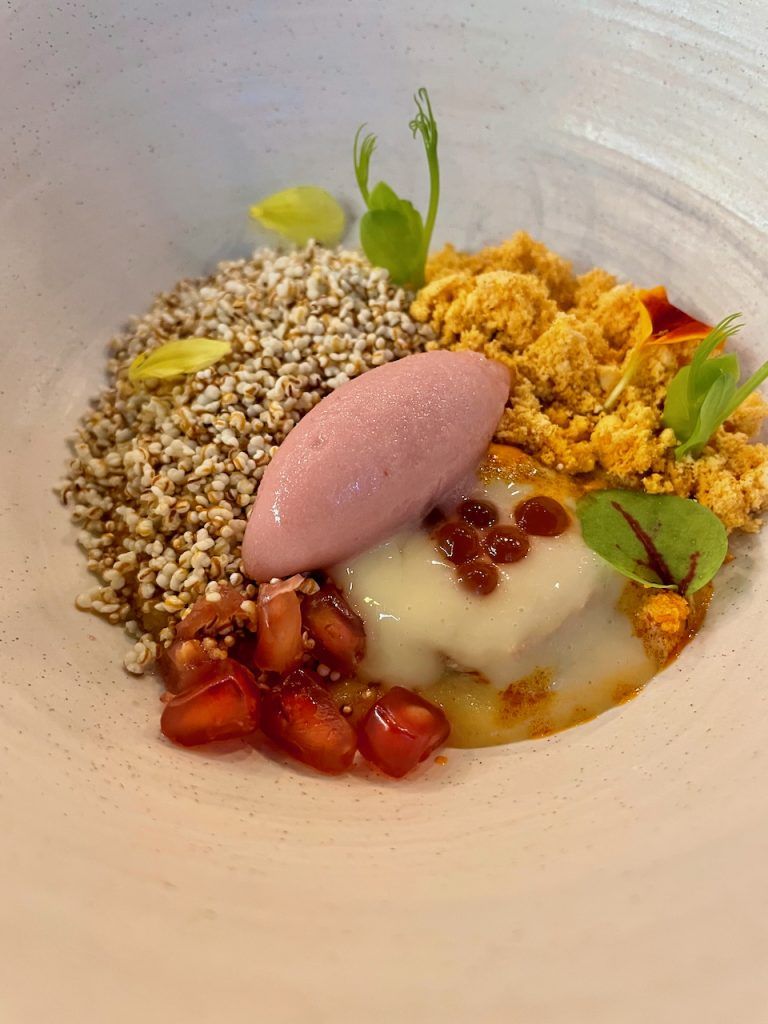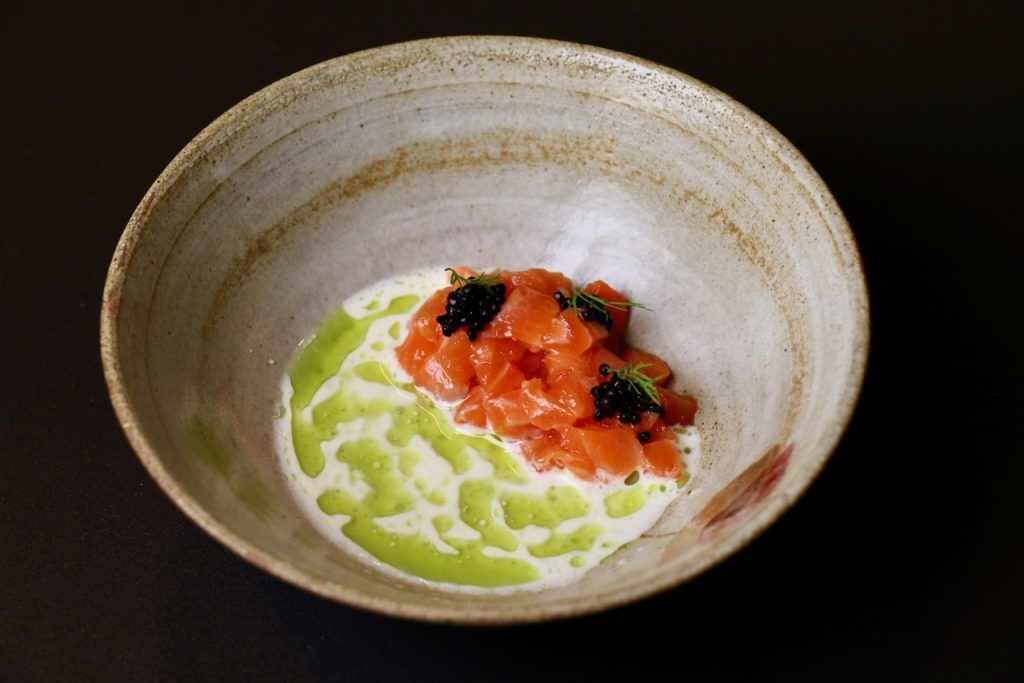 Alessandro Tormolino, uno de los referentes con proyección meteórica en Italia, en la preciosa Costa Amalfitana, nos creaba este impresionante plato, La Spigola Aquanaria, con pesto amalfitano e salsa affumicata. Sensi se ha convertido en uno de mis restaurantes preferidos del mundo y necesito ir cada año para ver la evolución de este brillante equipo que este año ha renovado profundamente su impresionante restaurante y las habitaciones de su hotel.