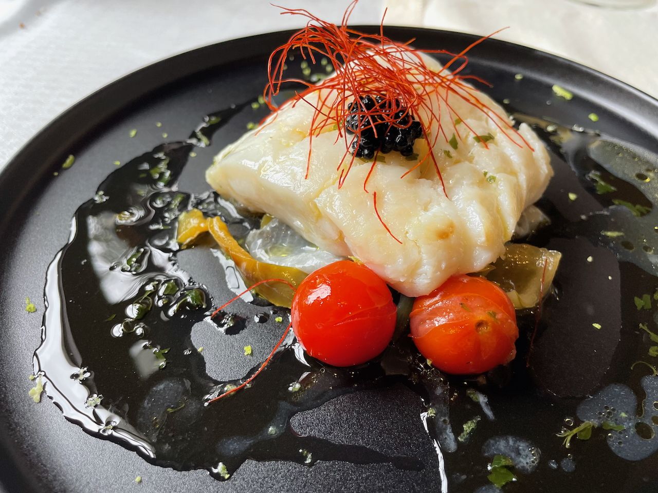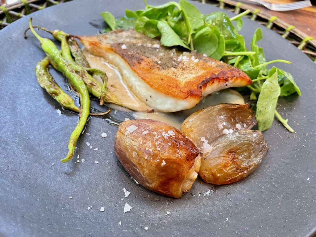 El impecable `Lomo de merluza con Beurre blanc´ de Toño Rodríguez llenaba de color una comida marcada por la belleza del entorno donde trabaja este creativo chef.