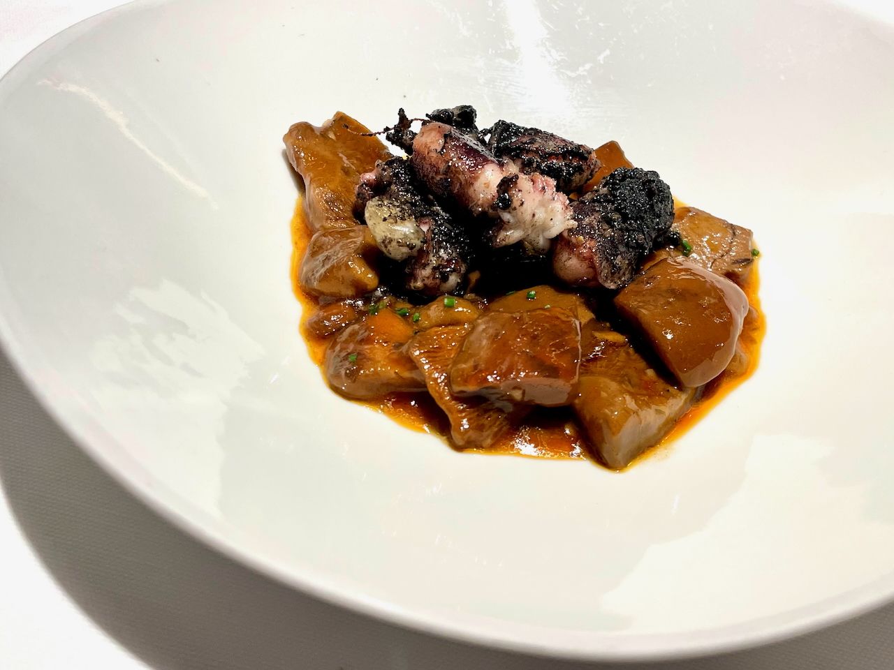 Por supuesto no puede faltar en esta lista algún plato de uno de mis restaurantes preferidos en mi ciudad, Alabaster, bajo la dirección del muy conocido Óscar Marcos, junto a los vinos que selecciona en la armonía perfecta pude disfrutar de estos sepionets con boletus.