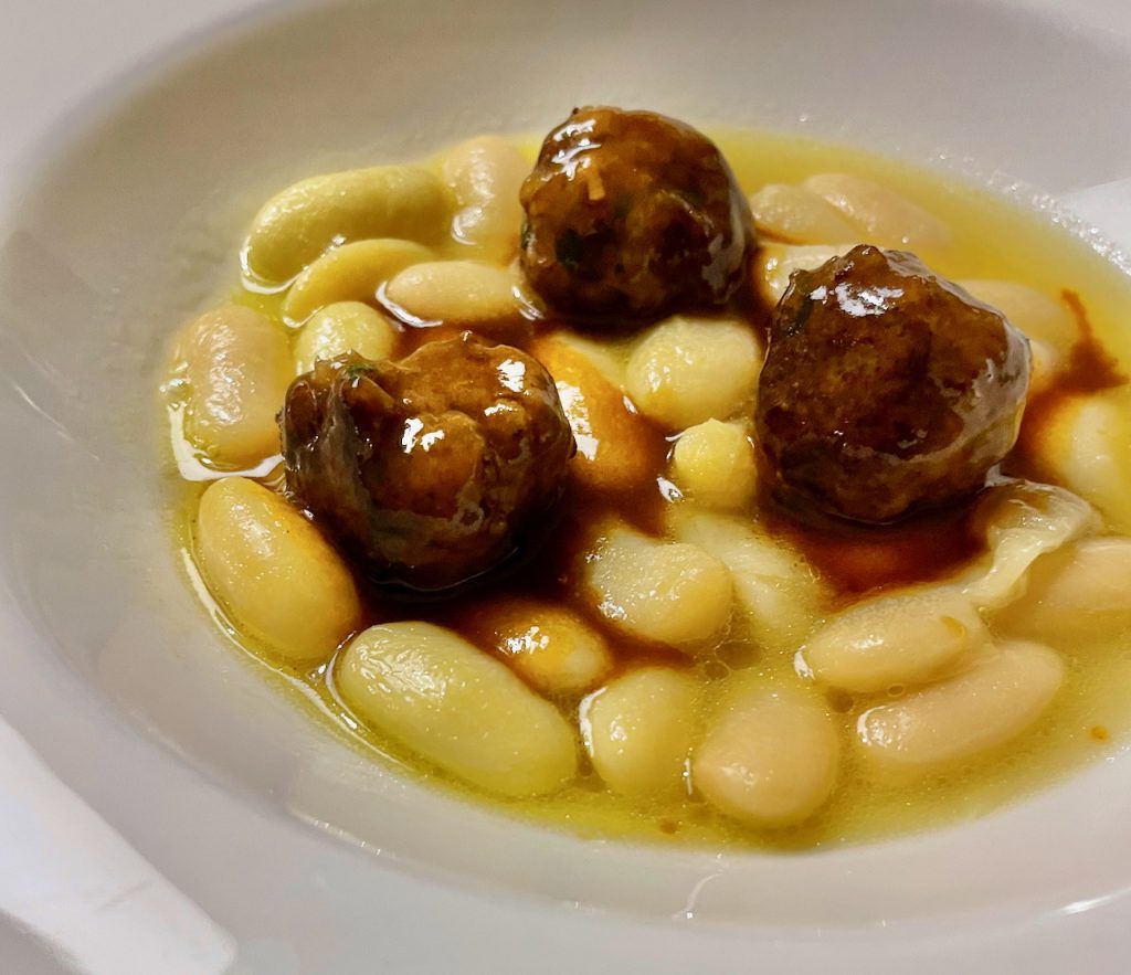Pedir a Nacho y Esther Manzano que te hagan un menú, con el producto de Monte Nevado como base, tendría como resultado una espectacular comida que no voy a olvidar, entre todos lo platos estaban estas sensacionales Fabes estofadas con albóndigas de cerdo ibérico y boletus. Y todo en el lugar mágico que es Narbasu con el telón de fondo de la belleza extrema de los Picos de Europa.